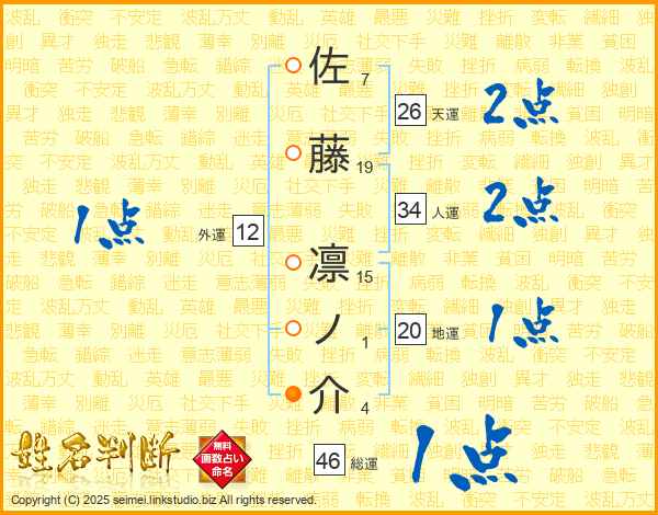 佐(7画)藤(19画) 凛(15画)ノ(1画)介(4画)