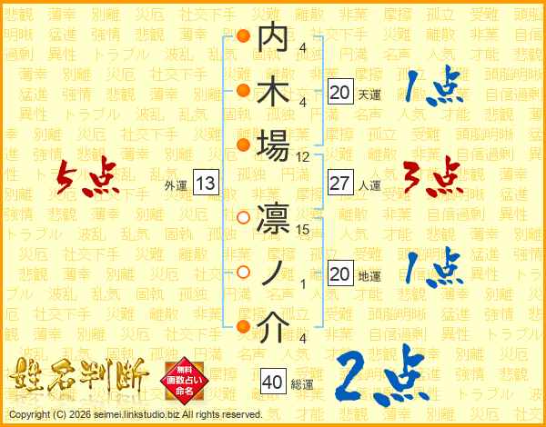 内木場凛ノ介さんの外運は13画の5点!