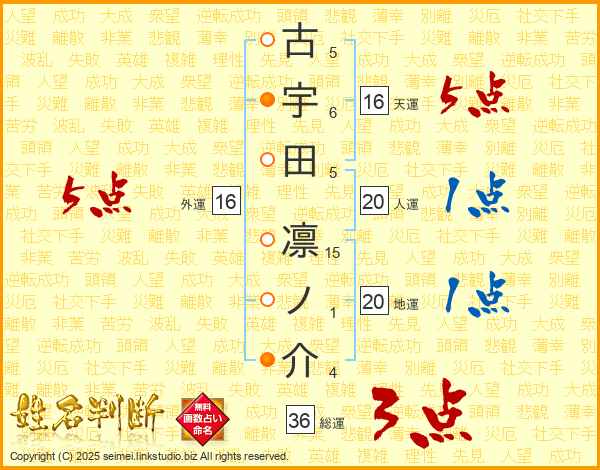 古宇田凛ノ介さんの外運は16画の5点!