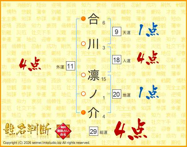 合川凛ノ介さんの総運は29画の4点!