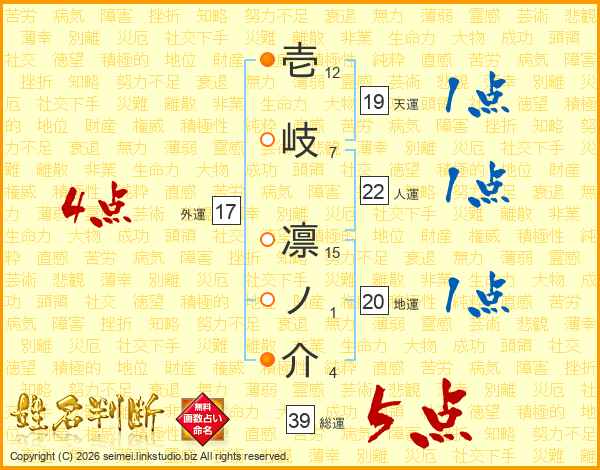 壱岐凛ノ介さんの総運は39画の5点!