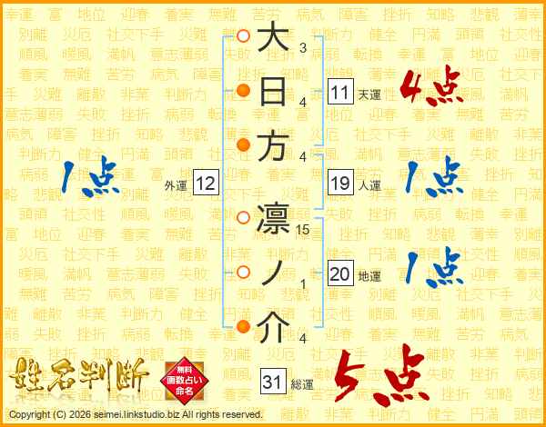 大日方凛ノ介さんの総運は31画の5点!