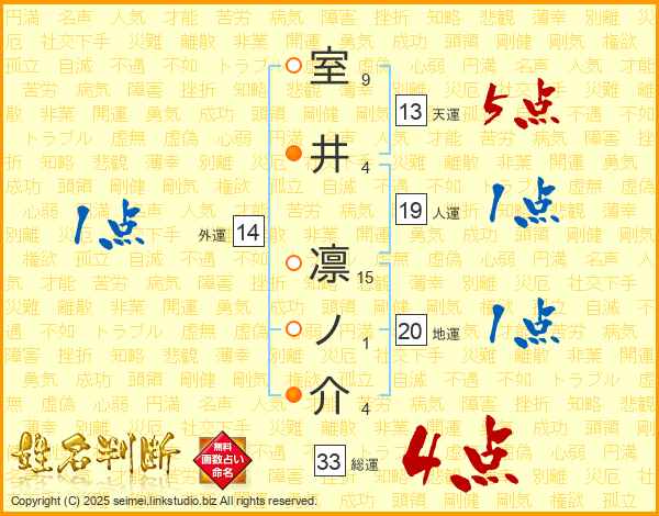 室(9画)井(4画) 凛(15画)ノ(1画)介(4画)