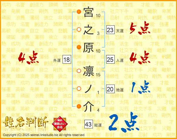 宮(10画)之(3画)原(10画) 凛(15画)ノ(1画)介(4画)