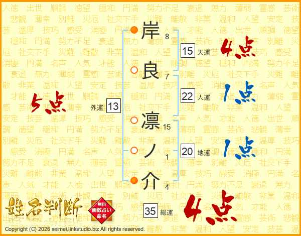 岸良凛ノ介さんの総運は35画の4点!