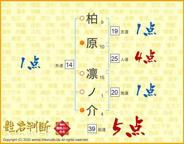 柏(9画)原(10画) 凛(15画)ノ(1画)介(4画)