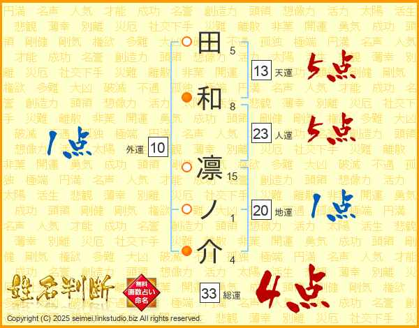 田和凛ノ介さんの総運は33画の4点!