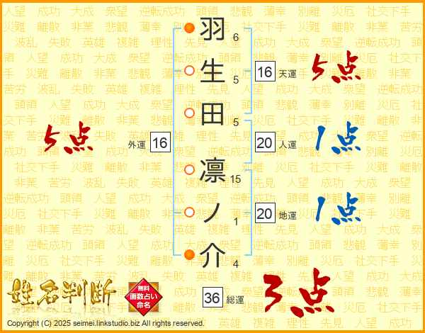 羽生田凛ノ介さんの外運は16画の5点!
