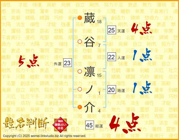 蔵谷凛ノ介さんの総運は45画の4点!