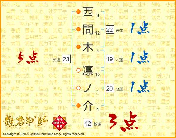 西間木凛ノ介さんの総運は42画の3点!