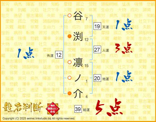 谷渕凛ノ介さんの総運は39画の5点!