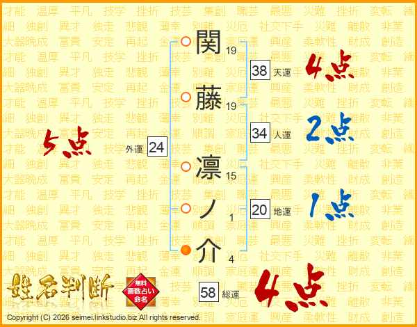 関藤凛ノ介さんの総運は58画の4点!