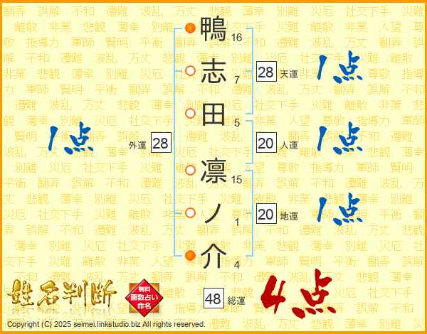 鴨志田凛ノ介さんの総運は48画の4点!