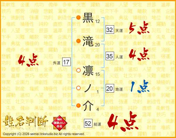 黒滝凛ノ介さんの総運は52画の4点!