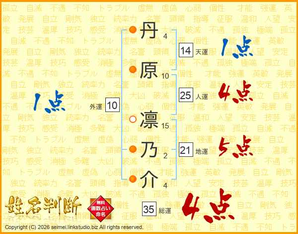 丹原凛乃介さんの総運は35画の4点!