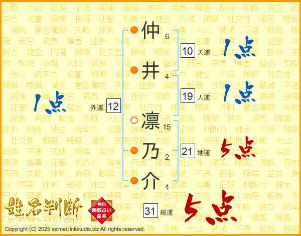 仲井凛乃介さんの総運は31画の5点!