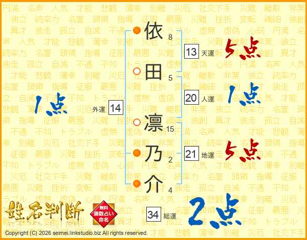依(8画)田(5画) 凛(15画)乃(2画)介(4画)