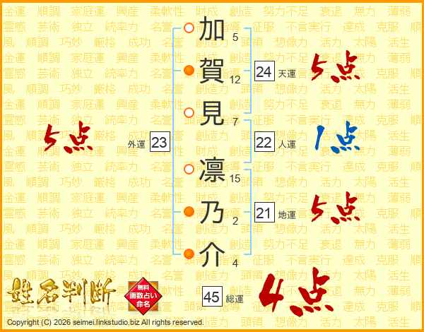 加賀見凛乃介さんの総運は45画の4点!