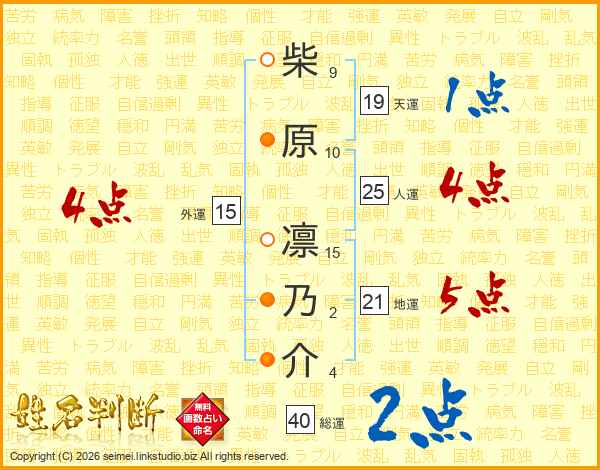 柴原凛乃介さんの人運は25画の4点!