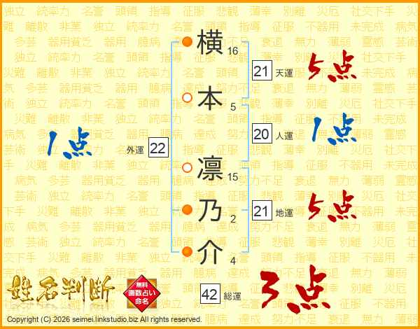 横本凛乃介さんの天運は21画の5点!