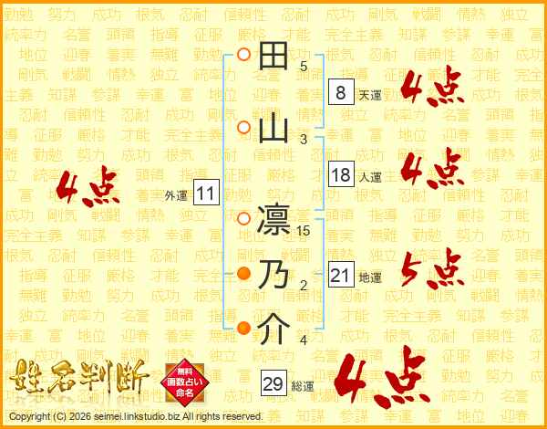 田山凛乃介さんの総運は29画の4点!