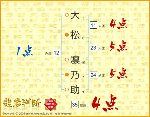 大松凛乃助さんの総運は35画の4点!