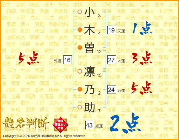 小木曽凛乃助さんの総運は43画の2点!