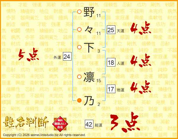 野々下凛乃さんの天運は25画の4点!