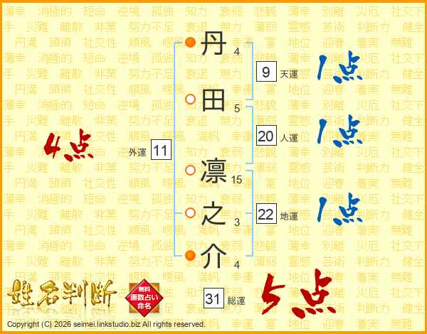丹(4画)田(5画) 凛(15画)之(3画)介(4画)