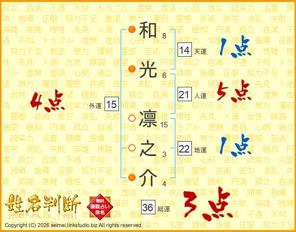 和光凛之介さんの外運は15画の4点!