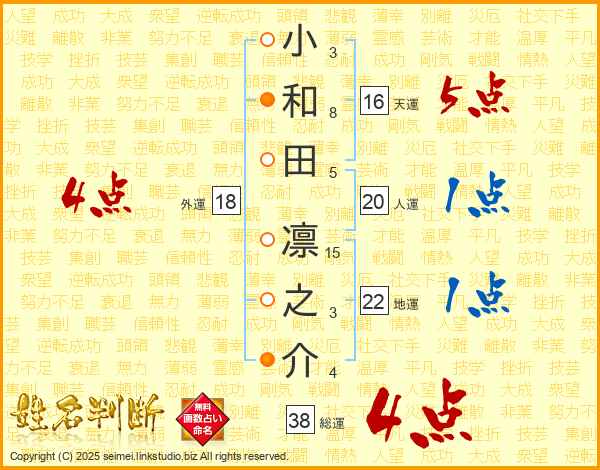 小(3画)和(8画)田(5画) 凛(15画)之(3画)介(4画)