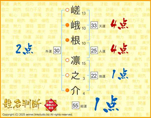 嵯峨根凛之介さんの総運は55画の1点!
