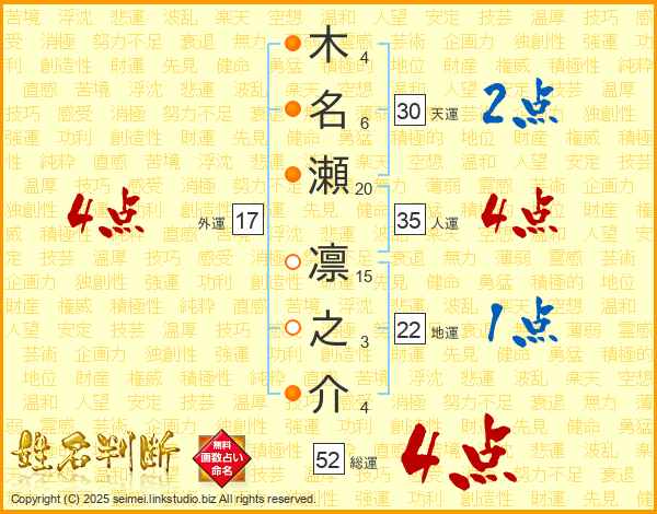 木名瀬凛之介さんの総運は52画の4点!