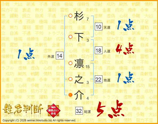 杉下凛之介さんの総運は32画の5点!