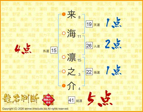 来海凛之介さんの総運は41画の5点!