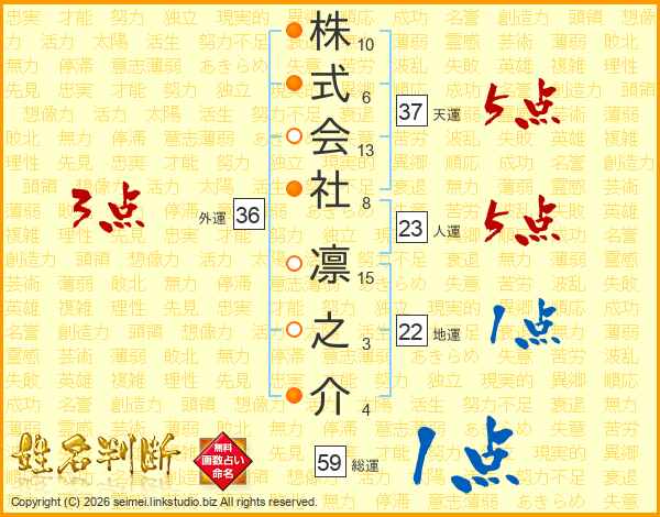 株(10画)式(6画)会(13画)社(8画) 凛(15画)之(3画)介(4画)