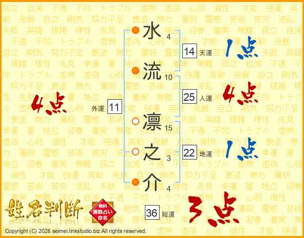 水(4画)流(10画) 凛(15画)之(3画)介(4画)