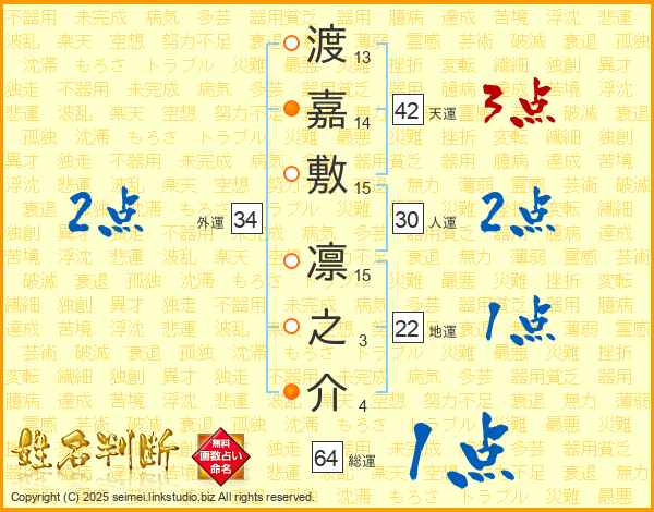 渡嘉敷凛之介さんの外運は34画の2点!