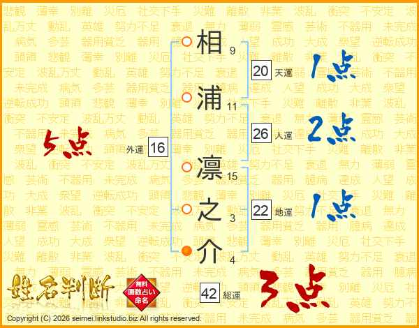 相浦凛之介さんの人運は26画の2点!