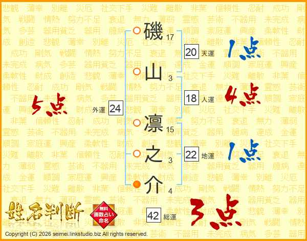 磯山凛之介さんの総運は42画の3点!