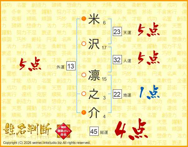 米沢凛之介さんの総運は45画の4点!