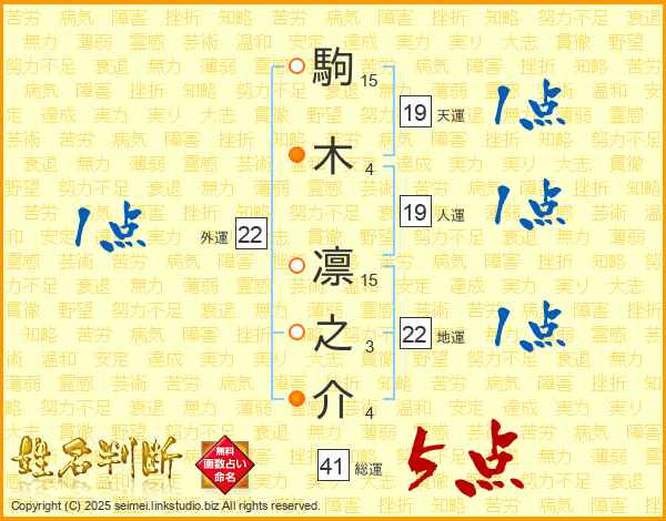 駒木凛之介さんの総運は41画の5点!