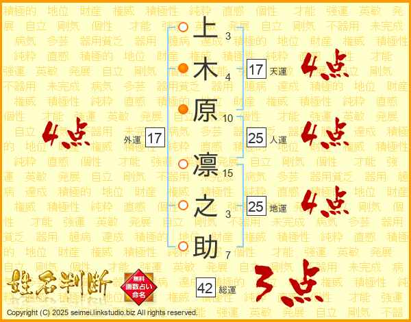 上木原凛之助さんの人運は25画の4点!