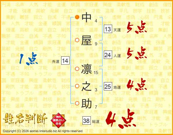 中屋凛之助さんの総運は38画の4点!