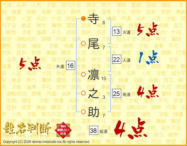 寺尾凛之助さんの総運は38画の4点!