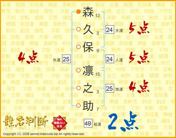 森久保凛之助さんの総運は49画の2点!