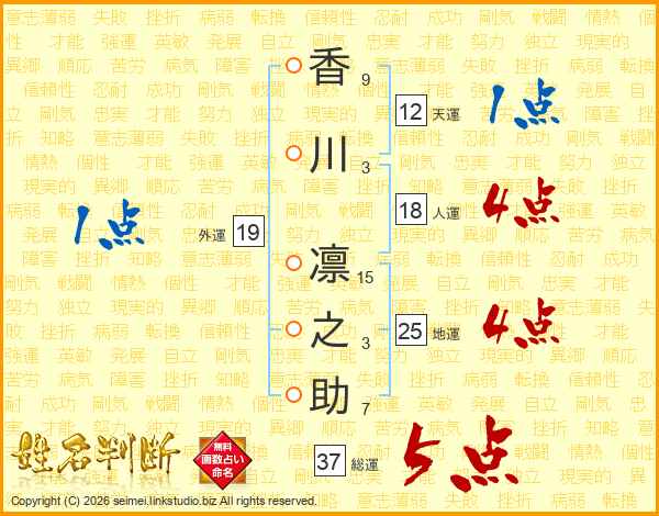 香川凛之助さんの総運は37画の5点!