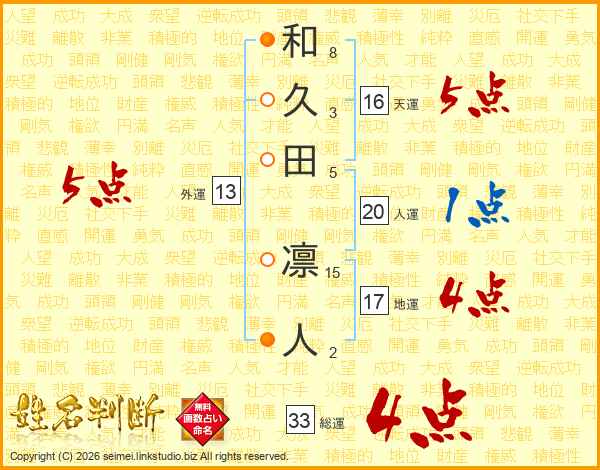 和久田凛人さんの総運は33画の4点!