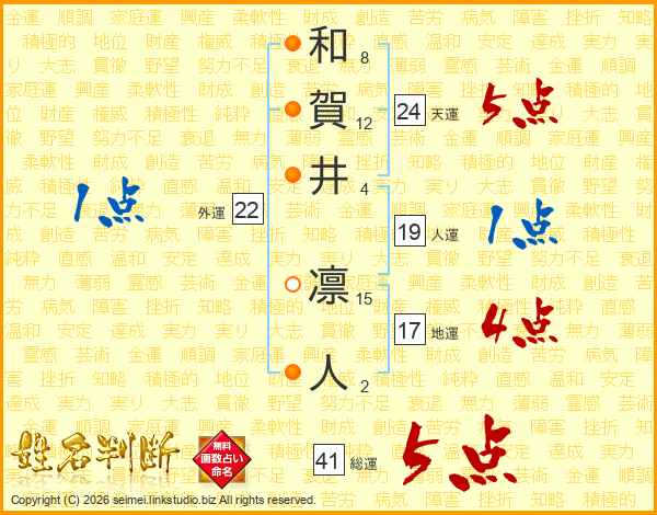 和(8画)賀(12画)井(4画) 凛(15画)人(2画)