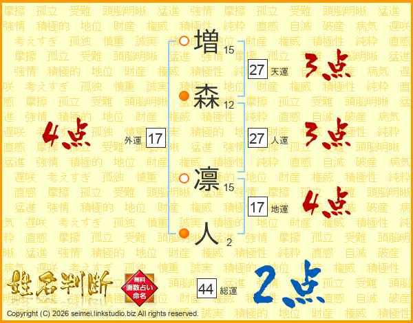 増森凛人さんの総運は44画の2点!